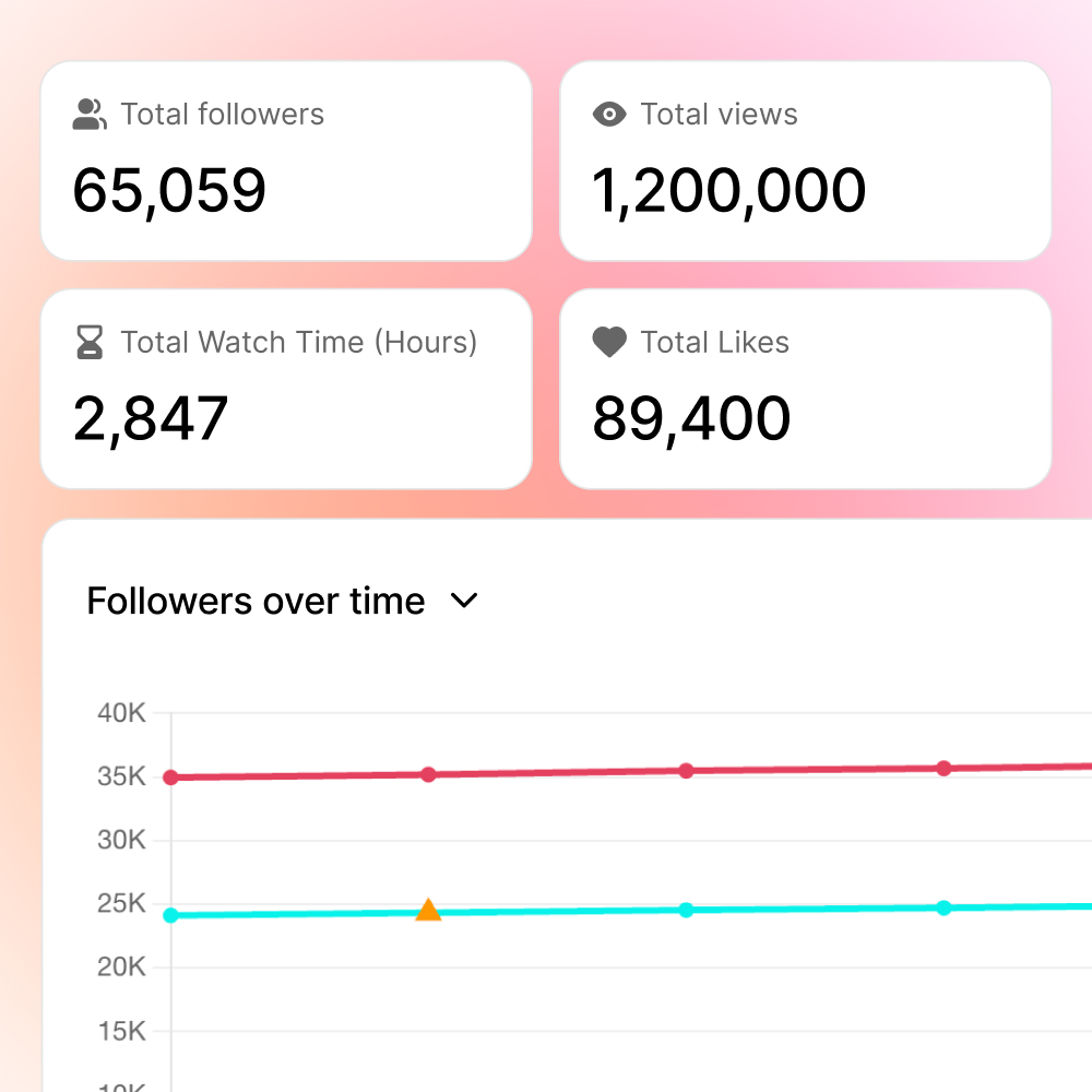 Track views, engagement, and audience growth across all your platforms. No more piecing together data from five different apps—get cumulative metrics that show your true reach and impact.