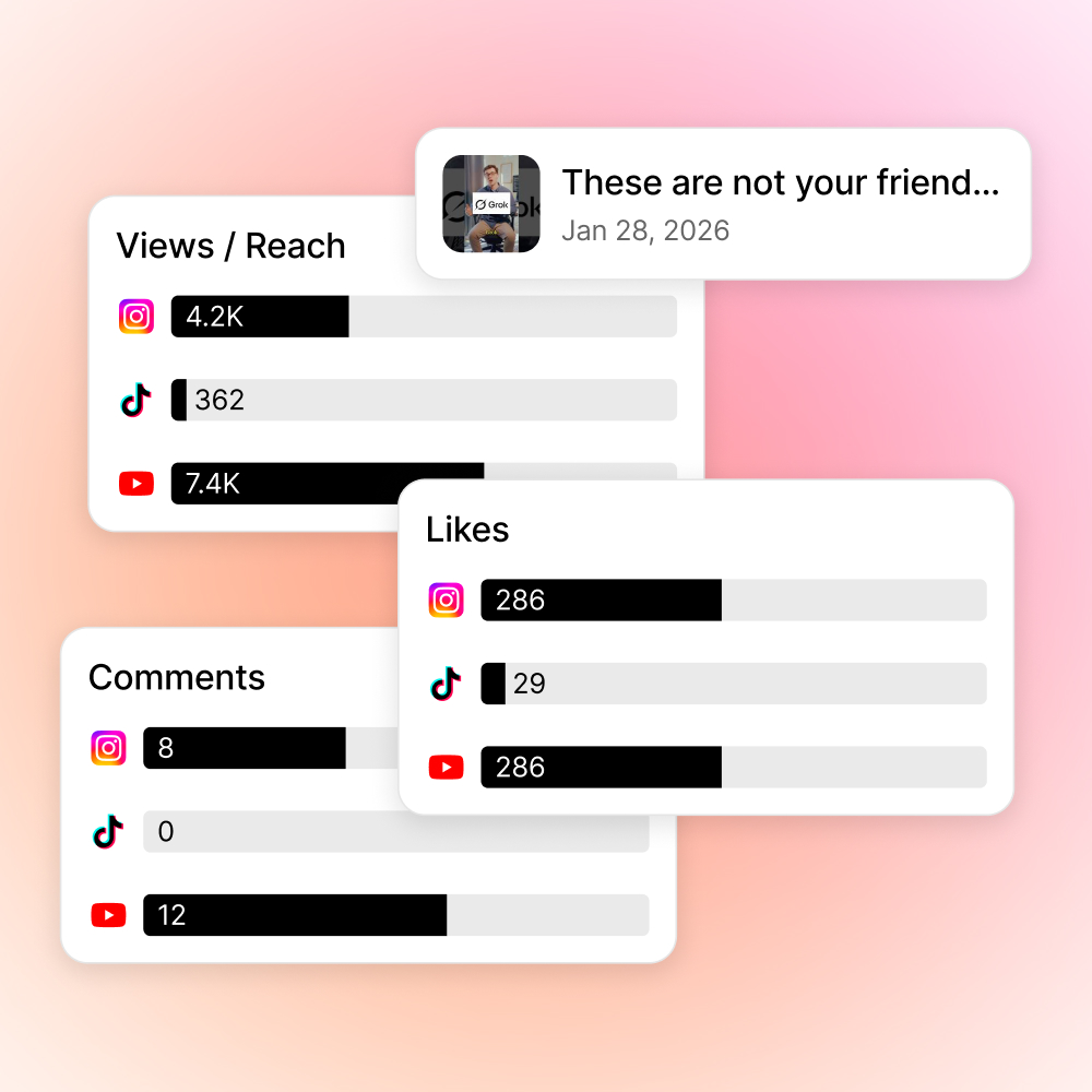 See which posts perform well on what platforms. Instantly understand what’s working and double down on it.