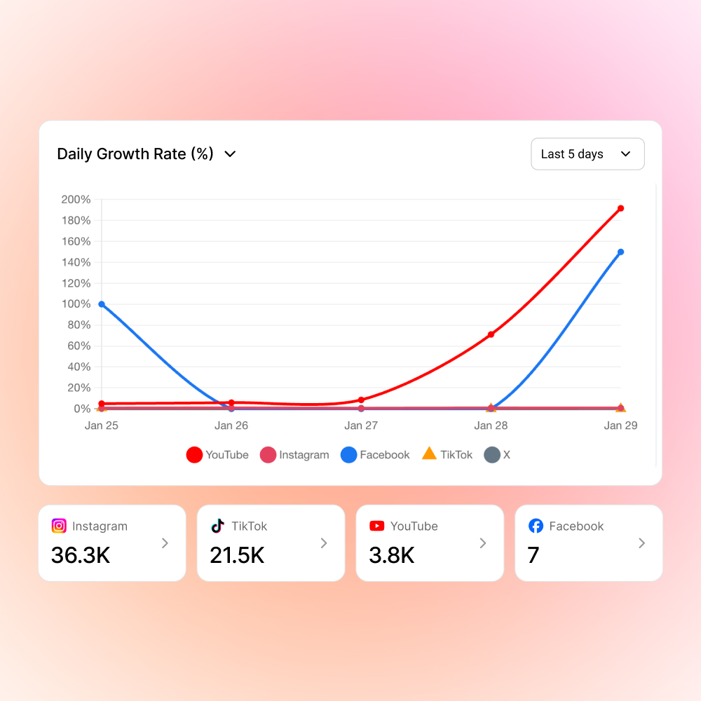 See your complete performance story across TikTok, Instagram, YouTube, and Facebook and compare with creators in your niche.